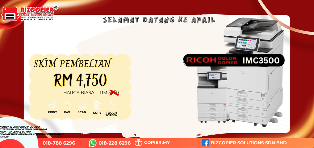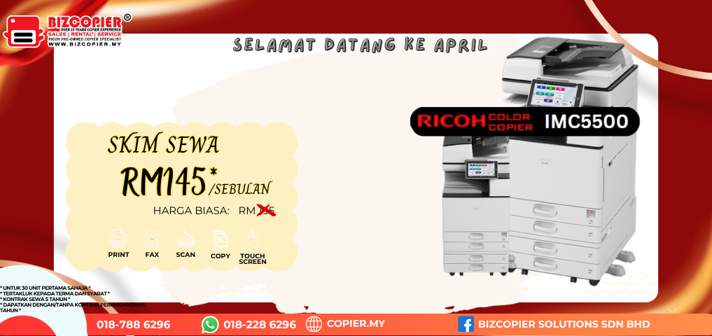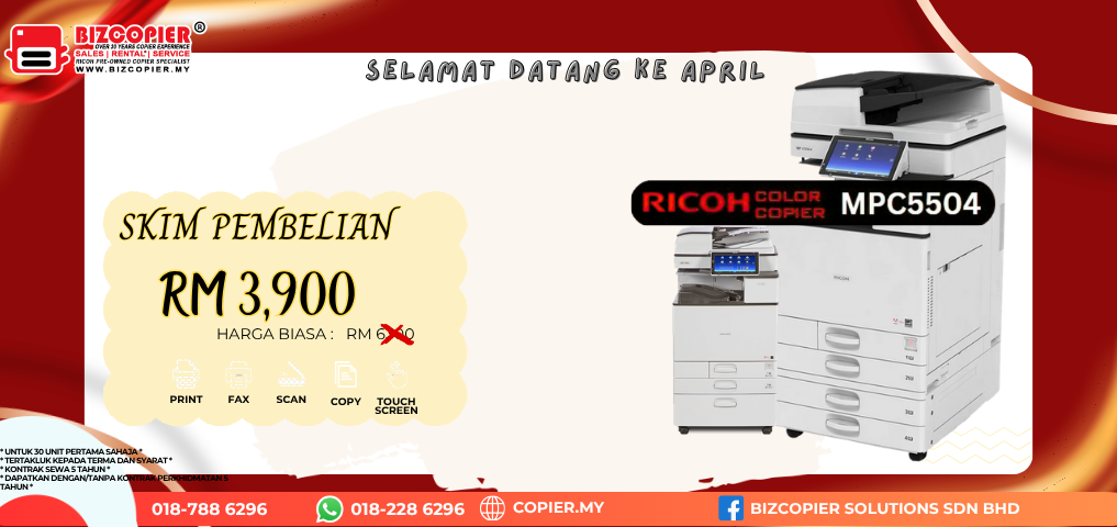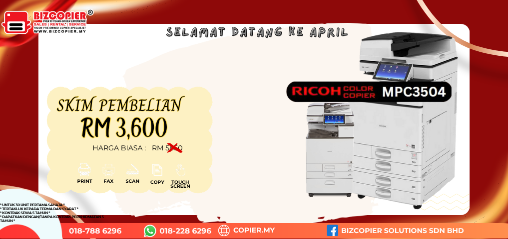 We are a mainstream Ricoh dealership based in Klang, Selangor Darul Ehsan and have been supplying to our customer based in Klang Valley and Selangor area for over 30 years experience with new and pre-owned machines, all which come with 5 years warranty and service call-out.